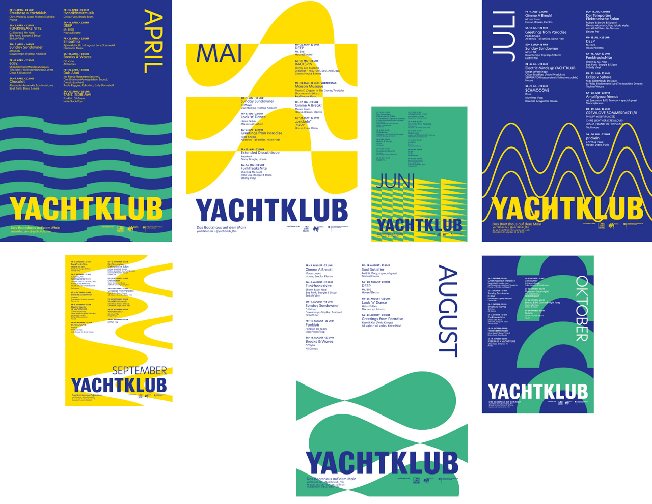 The Corporate and Motion Identity emphasize playfulness: a color scheme based off of water, nature and sun, sharp graphics in bold and fun motion. A blinking smiley, a waving hand or an abstract wave - the animations were available as GIFs on Instagram to promote the Brand Relaunch. The digital Social Media Campaign was accompanied by Posters, Flyers and other Print products showcasing the new Corporate Identity in it‘s flexibility and diversiveness.