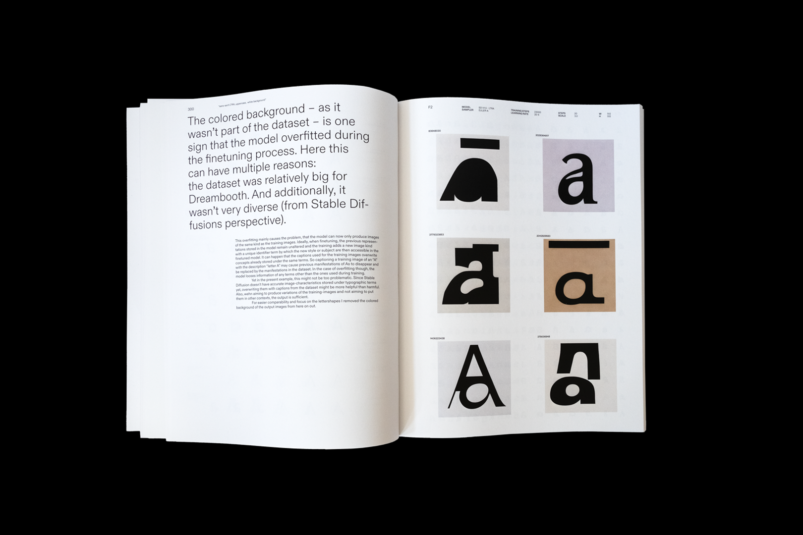 AI tools for image generation and manipulation are developing very fast. Yet, their utility for designing typography remains limited. ‘Latent Type’ explores different ways of working with Text-to-Image models – as one of the most recent additions to said tools. It analyzes available settings, inputs and finetuning options, both with the aim of creating experimental letter shapes as well as letters for developing fonts. It moreover explores the role of human and artificial intelligence in a shared design process, emerging questions and challenges, and the responsibilities that subsequently come with using these tools.